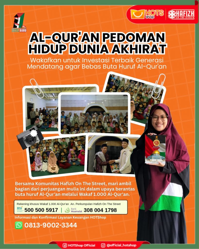 Sebagai upaya turut serta dalam mendukung program berantas buta huruf Al-Qur’an di Indonesia, Komunitas Hafizh On The Street (HOTS) membuka program Wakaf 1.000 Al-Qur’an edisi menyambut milad ke-11.