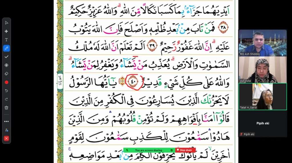 Kegiatan berikutnya mengadakan Talaqqi dan Tadabbur online pada Kamis (17/9). Pada pertemuan kali ini diagendakan untuk tilawah surat Al Maidah ayat 26-40.