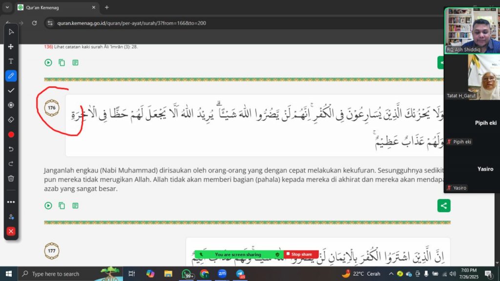 Kegiatan tim HOTSDa Bandung pekan ini berlanjut pada kegiatan online. Dimulai dengan Talaqqi & Tadabbur yang dilaksankan via Zoom pada Sabtu (26/7).