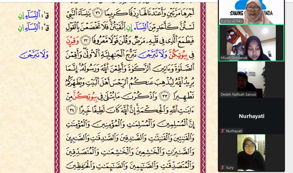 – Bimbel Al-Qur’an pada Rabu (24/9) di rumah Ummi Dedeh. Santri yang hadir diajak murojaah hafalan Qur’an.