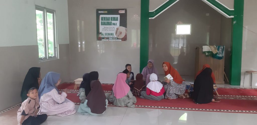 Ibu Aah dan Ibu Suirat dari tim HOTSDa Serang juga tak kalah siap dengan peserta. Rangkaian kegiatan pun dimulai, dari pembacaan shalawat, hingga ngaji, setoran hafalan dan ditutup dengan pembagian nasi kotak.