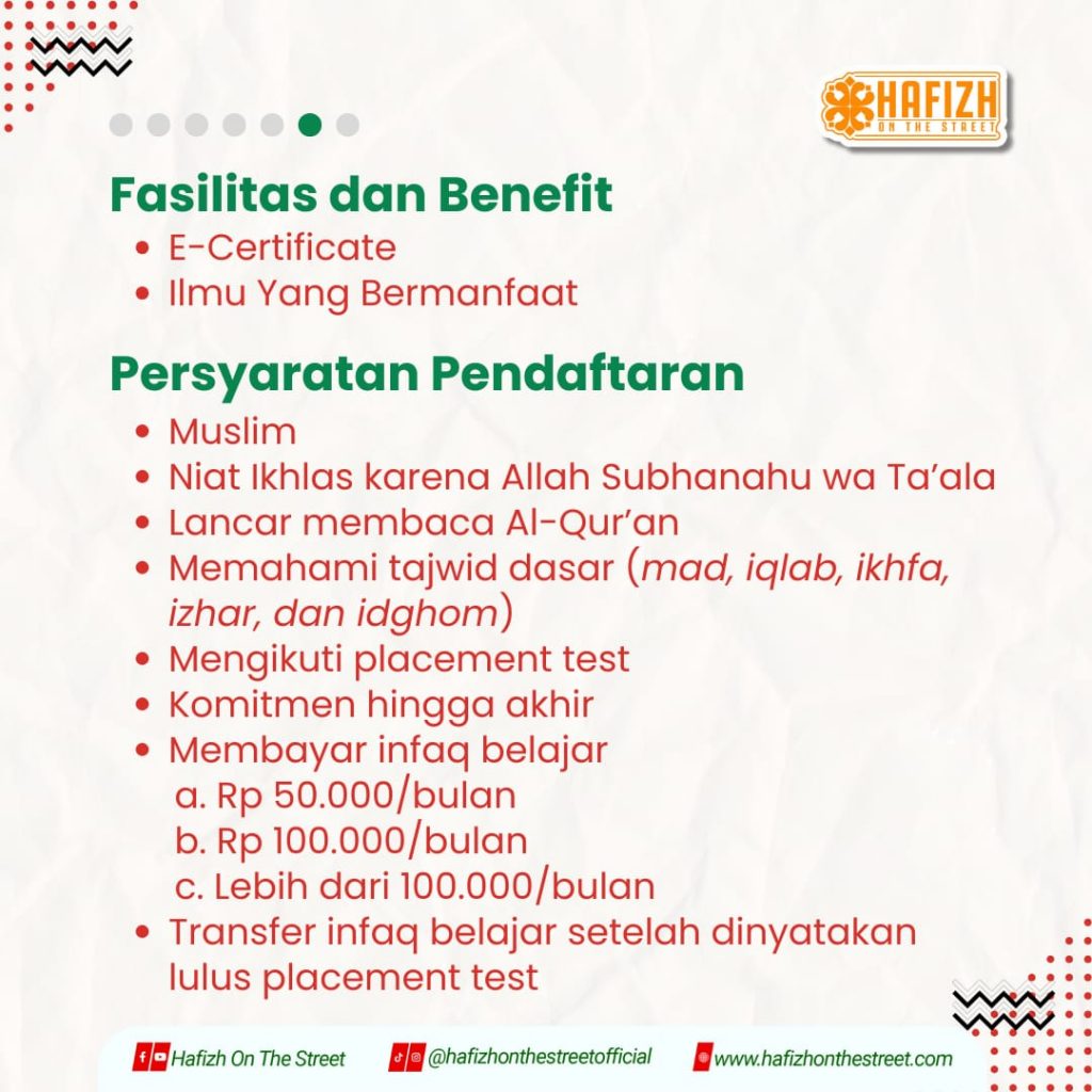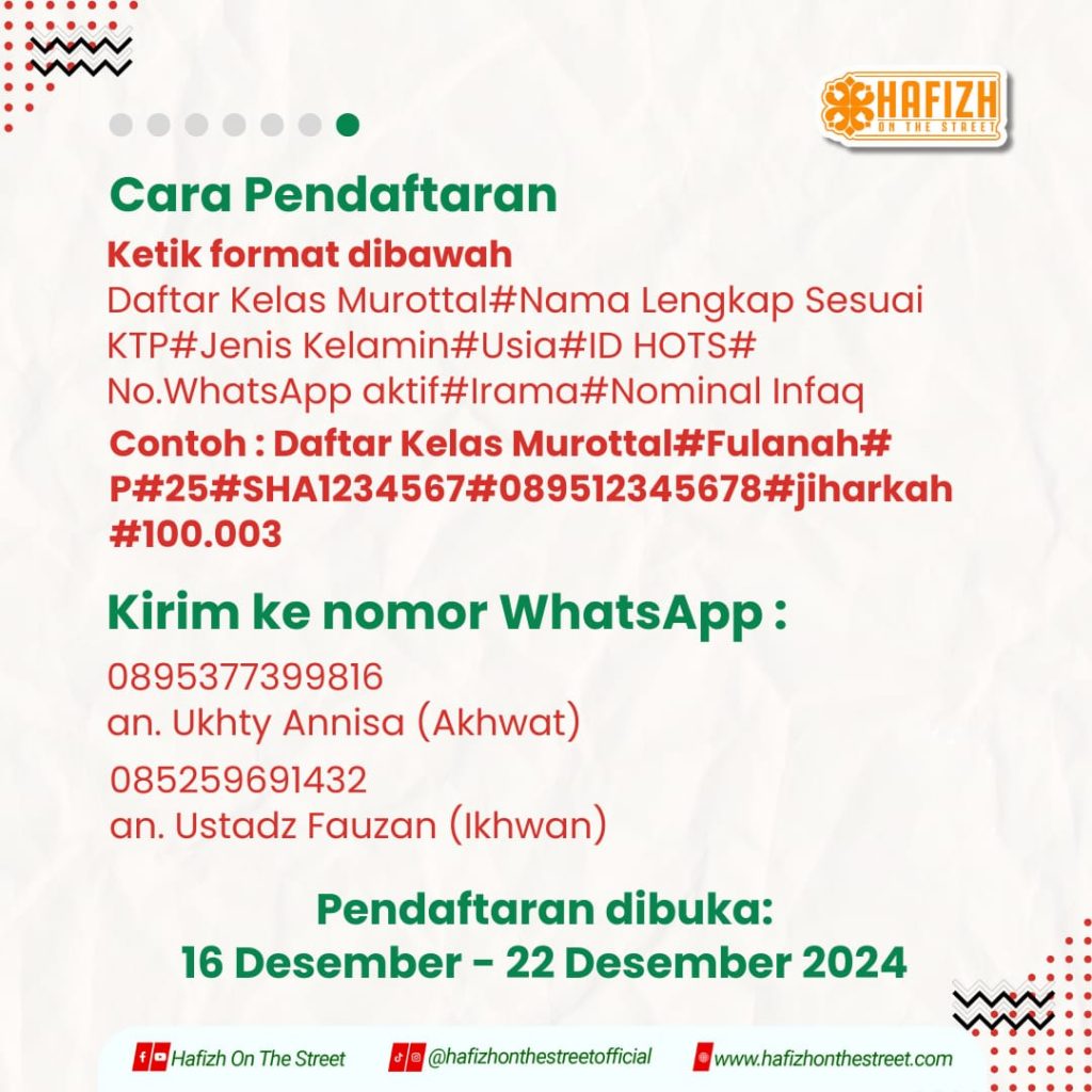 Memiliki suara merdu untuk membaca Al-Qur’an, kini sudah bukan mimpi lagi. Karena Hafizh On The Street punya kelas Murottal HOTS semudah tersenyum.