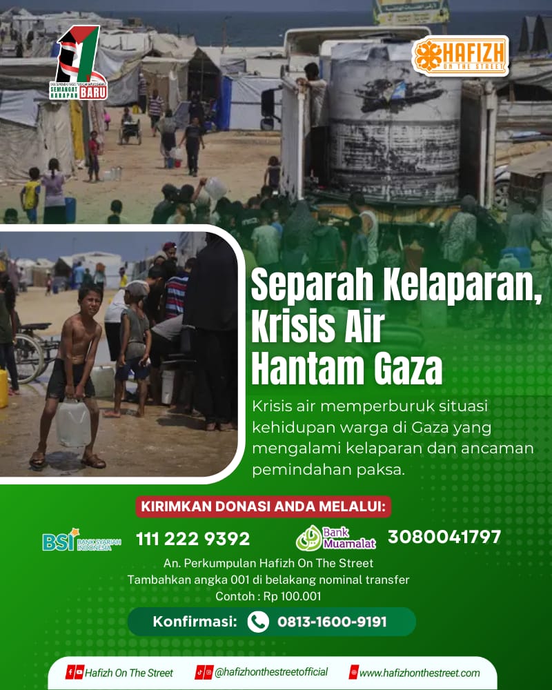 Warga Palestina di Jalur Gaza menghadapi krisis yang semakin meningkat dalam upayanya mengakses kebutuhan air bersih. Krisis air memperburuk situasi kehidupan warga di Gaza yang mengalami kelaparan dan ancaman pemindahan paksa.